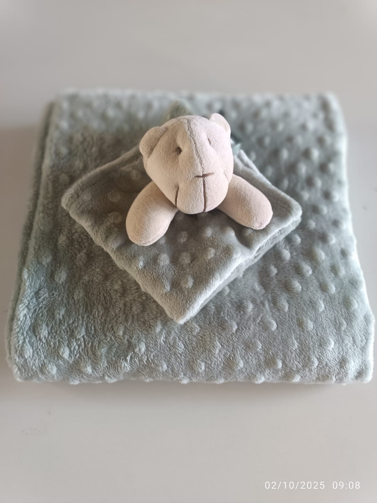 Um toque de delicadeza e aconchego! O cobertor soft antialérgico na cor bege acompanha uma charmosa naninha de ursinho no mesmo tom. Ideal para proporcionar conforto e segurança ao bebê.